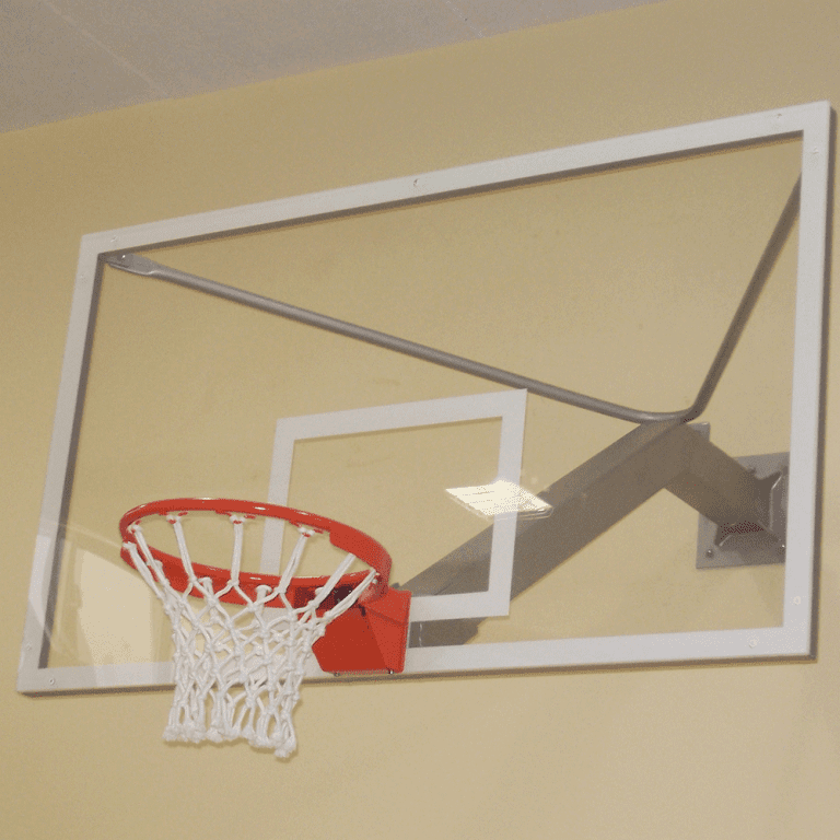 - Basketbol Potası Duvara Montaj, Yükseklik Ayarlı, Katlanabilir Mekanik, 10mm Cam Panya, 105×180 cm Sabit Çember
