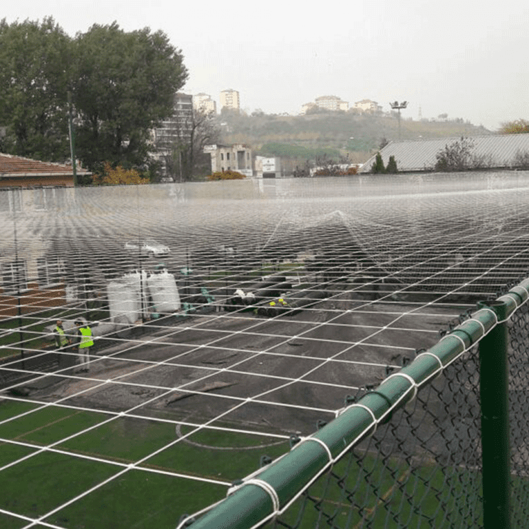 Spor Tesisleri çevre kaplamalarında ve tavanda kullanılan file ve ağlarımız yüksek mukavemetli Polyamid iplikten imal edilmektedir. Çeşitli göz aralığında ve kalınlığında üretilebilen ağlarımız UV ışınlarına, sıcak soğuğa karşı dayanıklıdır. Tavan ve kale ağlarımız özel paraşüt ipinden imal edilmektedir.