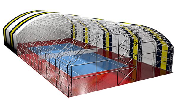 Kapalı tenis kortları Reform Sports tarafından çelik konstrüksiyon olarak yapılmaktadır. Çelik konstrüksiyon ile üzeri kapatılmış kortlar branda veya özel PVC kaplama ürünlerimiz ile izole edilir. Bu tür kapalı tenis sahası balon kortlara göre çok daha sağlam ve havadardır. İstenildiği zaman sahanın bütün yan brandaları açılabilmekte ve sürekli hava akışı sağlanabilmektedir.